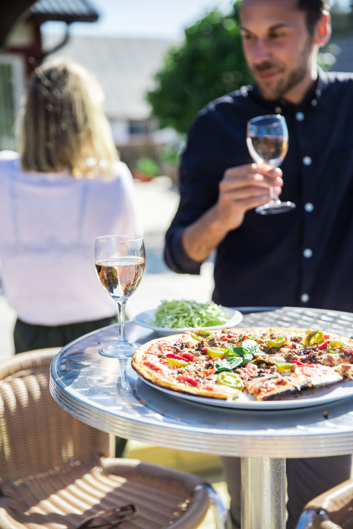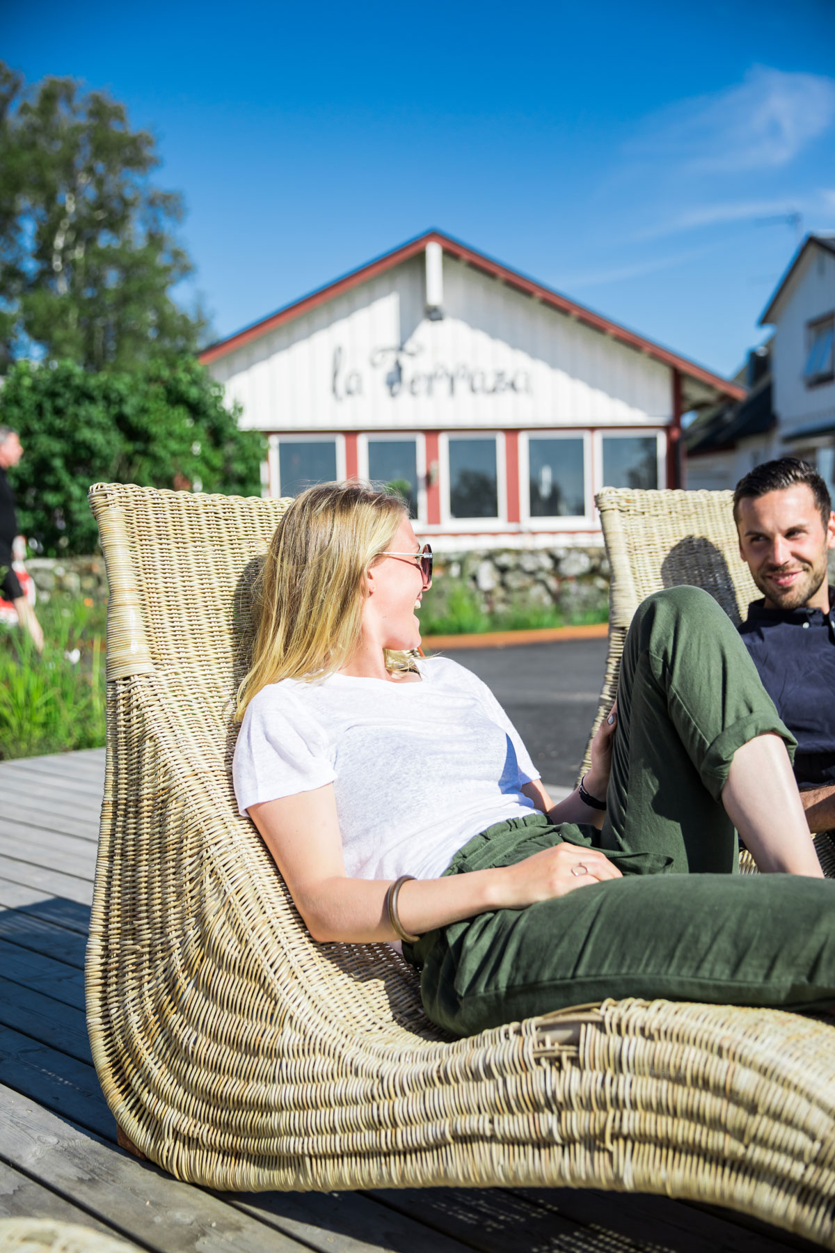 Här sitter ni inne i restaurangen eller eller ute på vår stora och härliga terass. På terassen finns även en utescen där vi bjuder på musikquiz, trubadurer och liveband flera kvällar i veckan under högsäsong.