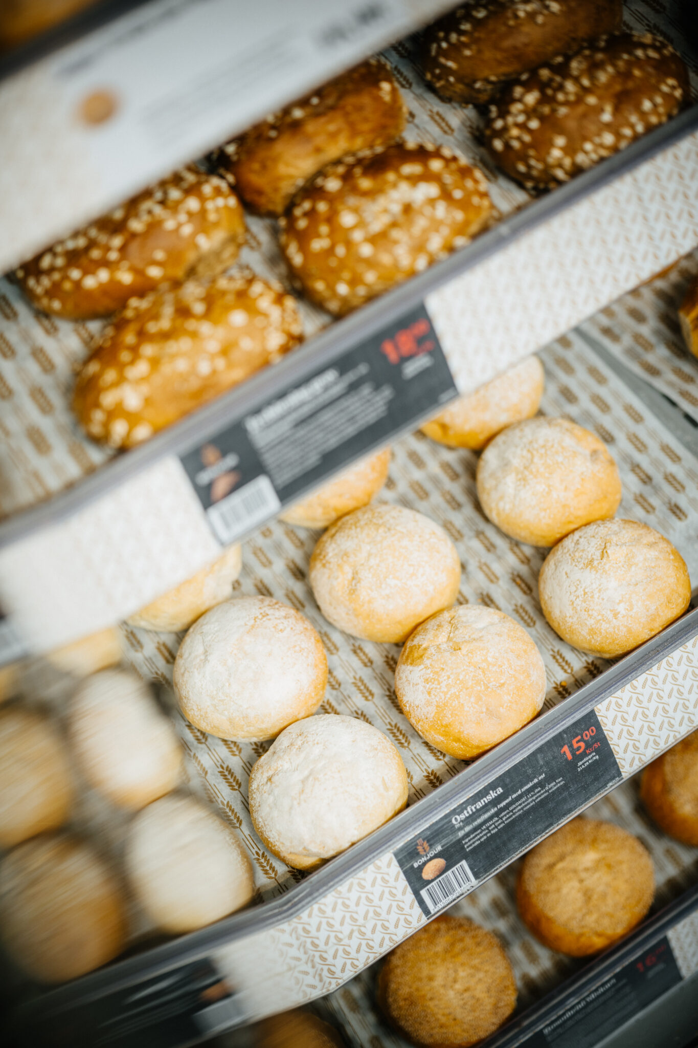 Doften av nybakat bröd kan göra att man känner sig lite knäsvag. Och det är lyx att ha tillgång till färska frallor och bullar varje dag. Här hittar du dina favoriter både till frukost och fikakorgen.