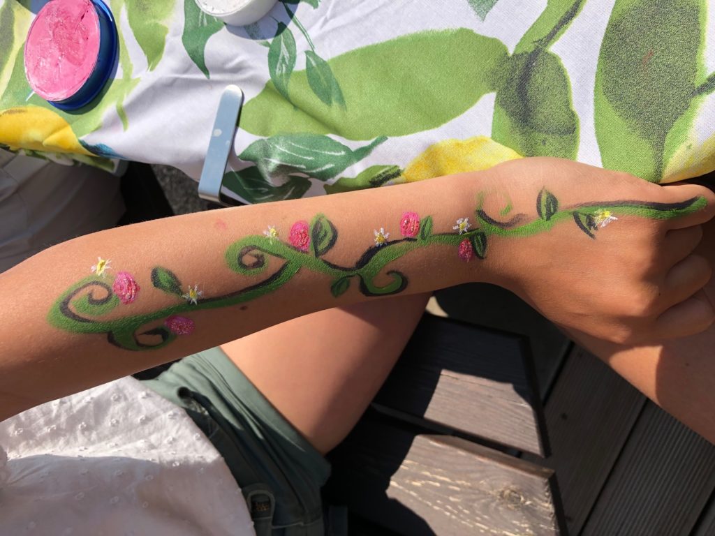 Vi har en stor hoppkudde där alla barn kan hoppa utan skor!