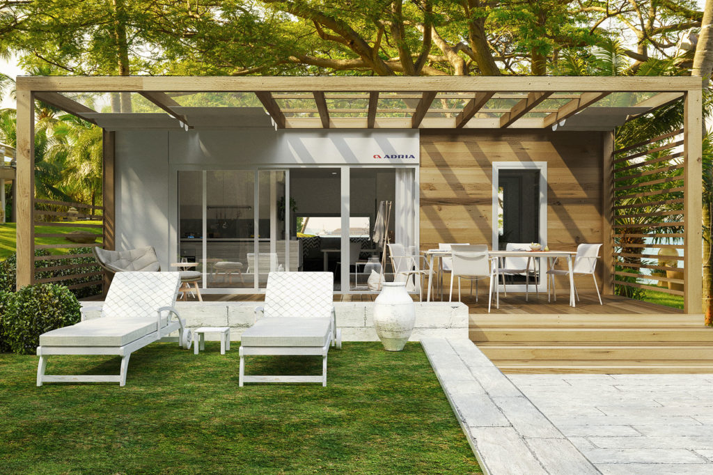 Adrias XLine är ”designad för livet” och erbjuder innovativa lösningar som prestigekök och badrum i hotellstil. Det finns ett brett utbud av sovmöjligheter och gott om boyta, inomhus och utomhus. De bästa apparaterna, belysning som kan styras och optimerad förvaring gör XLine till ett verkligt hem, samtidigt som den även har exklusiva detaljer som påminner om en hotellsvit. XLine-serien har en unik design och funktioner som betonar entrén med portik, panoramadörrar och färgkombination.