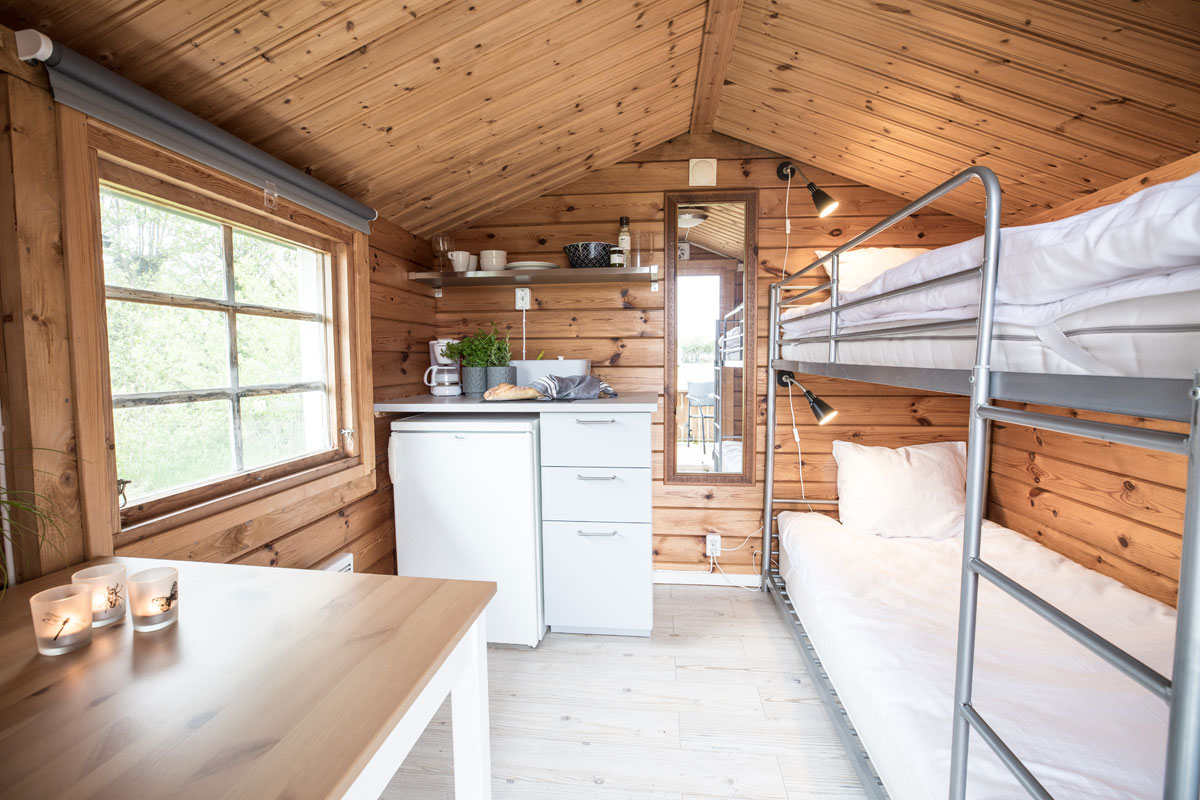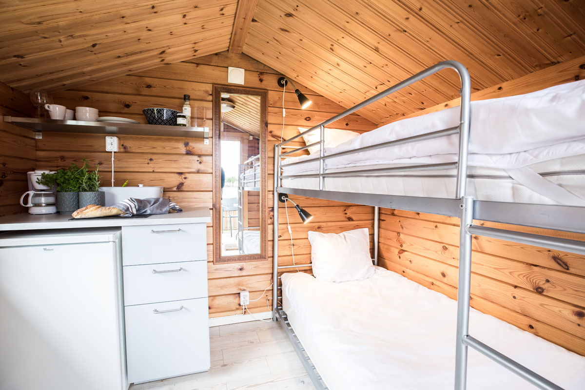 Välkomna till ert alldeles egna krypin! Våra campingstugor är mysiga och väldigt populära. De är välutrustade med kylskåp och hushållsutrustning. Varje stuga har även en egen altan med tillhörande trädgårdsmöbler.