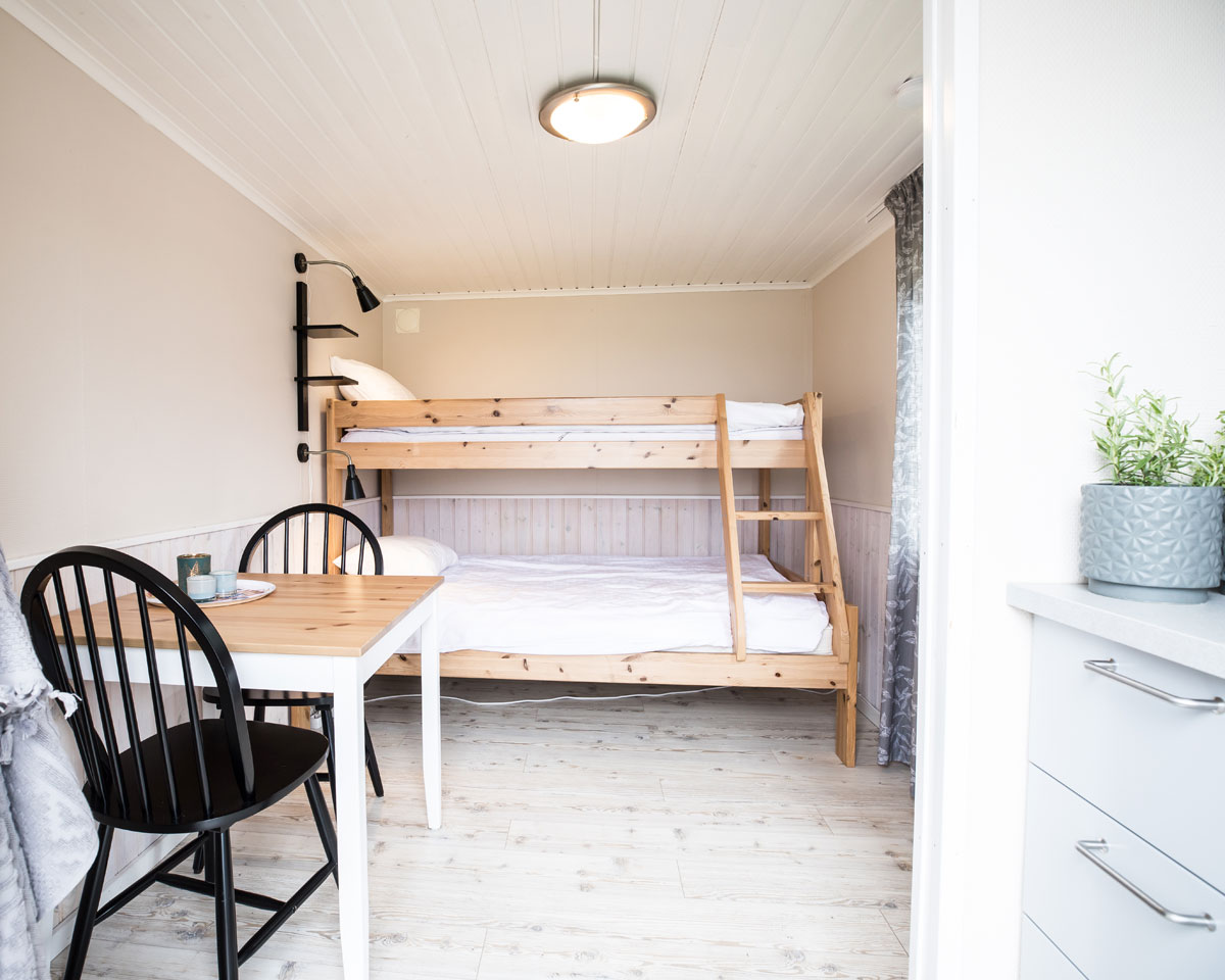 Välkomna till ert alldeles egna krypin! Våra campingstugor är enkla och otroligt populära. De är välutrustade med kylskåp och hushållsutrustning. Varje stuga har även en egen altan med tillhörande trädgårdsmöbler.