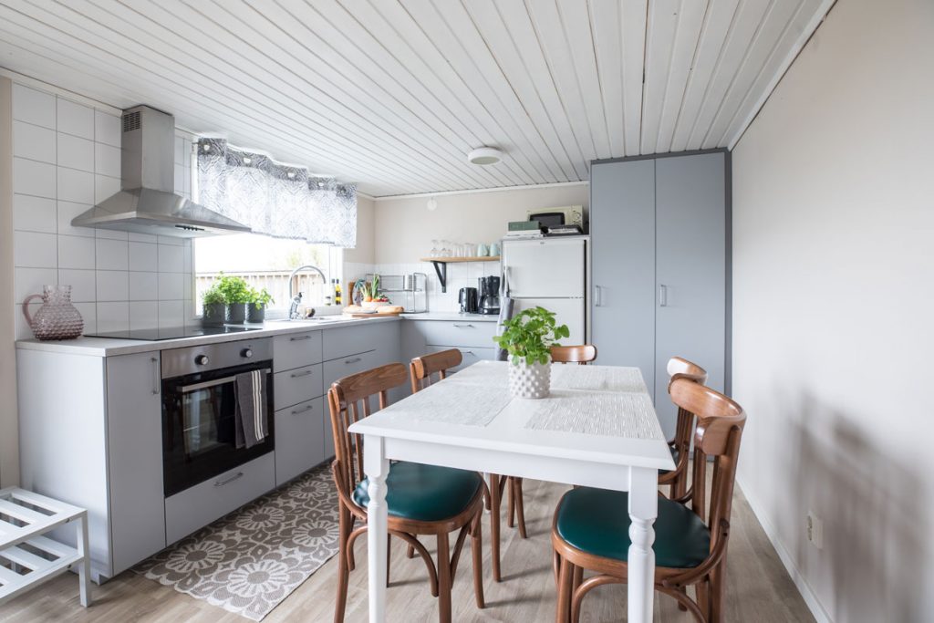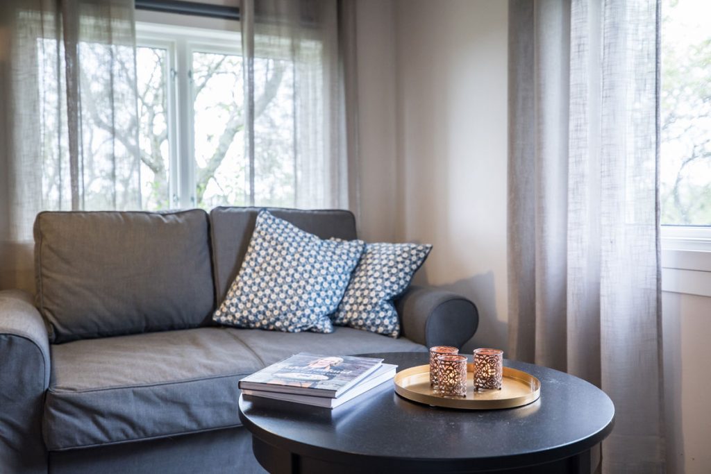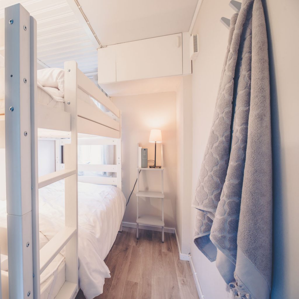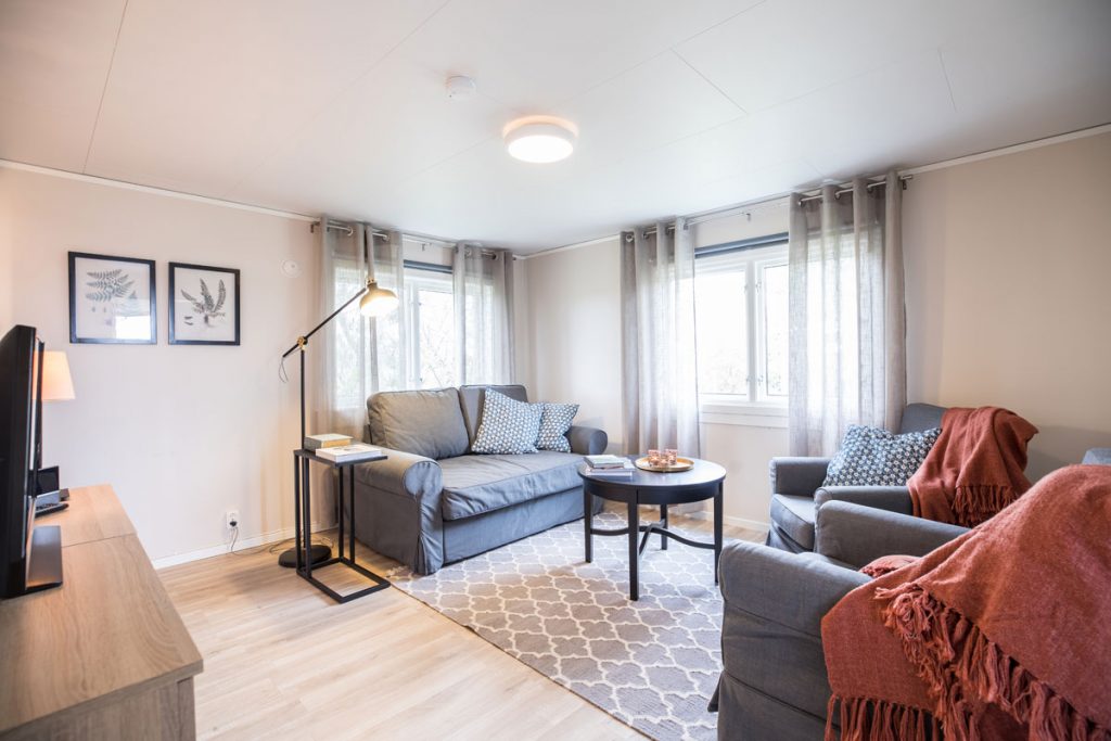 Bäddar: 1 dubbelsäng 160 cm, en våningssäng och extra bädd till barn i bäddsoffa