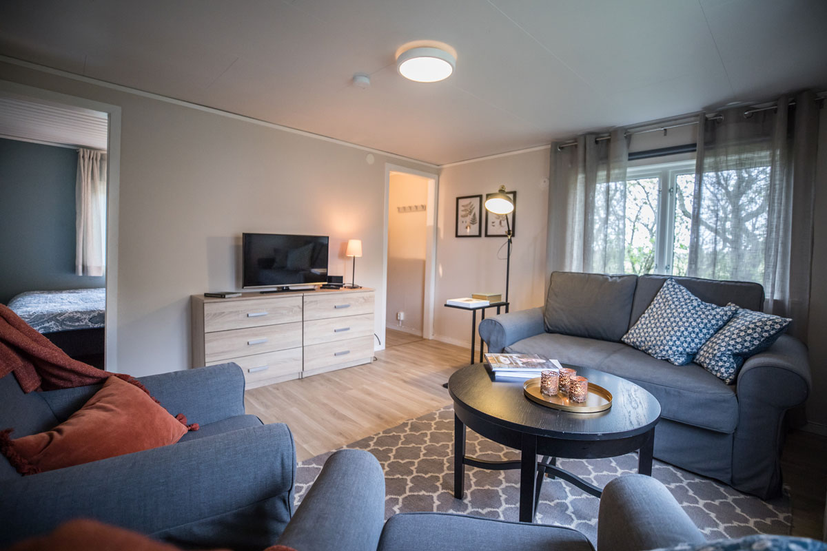 Välkomna till semesterboendet för er som vill ha en bekväm semester med familjen eller vännerna. Här bor ni skönt med kök & badrum, allrum med soffa & TV samt två stycken sovrum. Dessutom har stugan en egen altan med tillhörande trädgårdsmöbler.