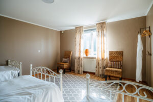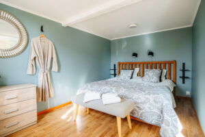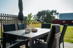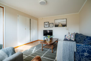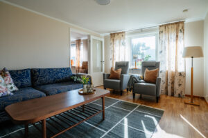 För er som vill bo lite större under er vistelse hos oss. 2 sovrum, ett med dubbelsäng och ett med 3 enkelsängar + extrabädd i bäddsoffa för barn. Kök, toalett och dusch.